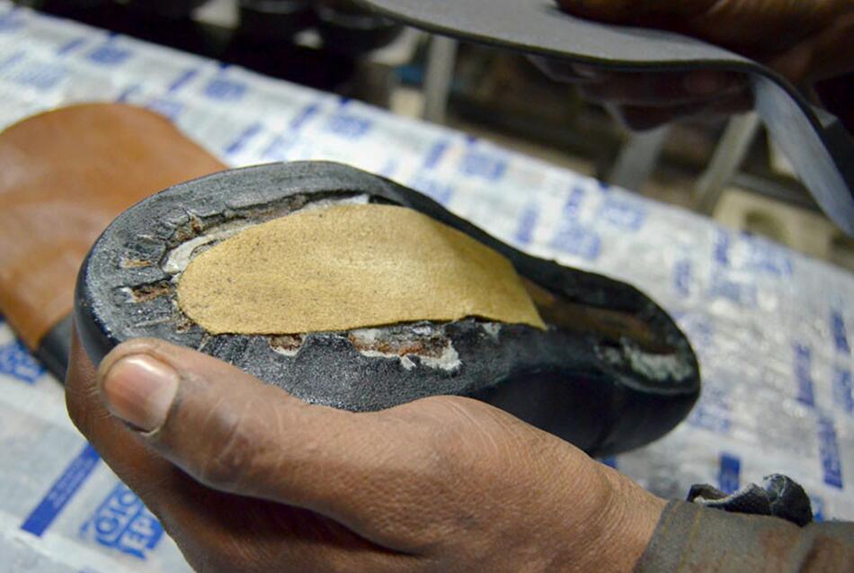 Once the outsole is attached to the upper the shoe is cleaned, inspected and put to be shipped.