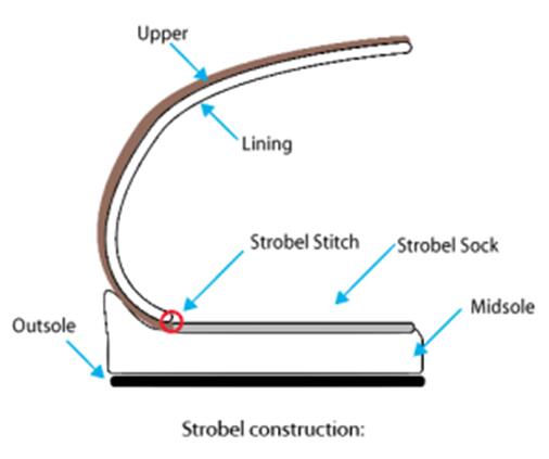 Since the insock is stitched and not cemented together with the upper it´s creating a more flexible shoe, making it suitable for different kinds of sneakers. Runner shoes and other athletic footwear are almost exclusively lasted by a stroble process due to the elastic and soft properties.