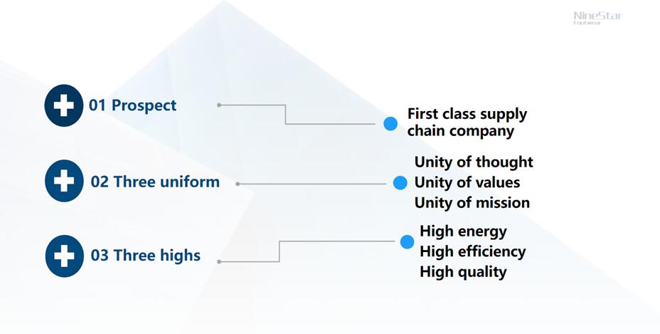 We, Ruian NineStar Footwear International Trade Co., Ltd., is a supply chain management enterprise integrating independent design, manufacturing, sales and service, with more than 20 years of R&D experience.